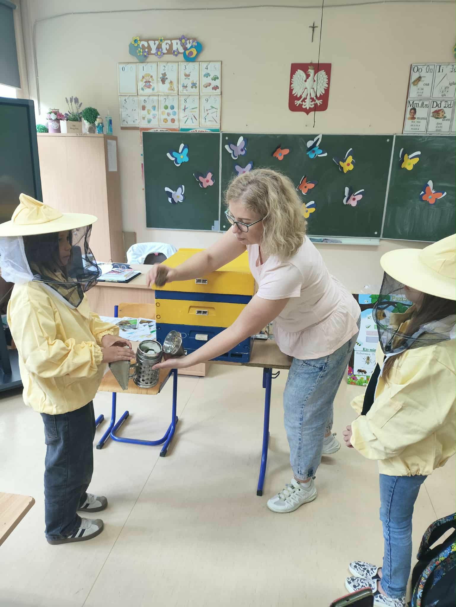 W ramach projektu przeprowadziliśmy proekologiczne warsztaty pszczelarsko‑rękodzielnicze w 20 szkołach i przedszkolach z terenu powiatu nowosądeckiego. Łącznie w zajęciach wzięło udział 1600 dzieci, które uczestniczyły w części teoretycznej (zmiany klimatu, bioróżnorodność, rola zapylaczy, podstawy pszczelarstwa) oraz praktycznej (tworzenie świec z wosku pszczelego, degustacja miodów, możliwość przymierzenia stroju pszczelarza).