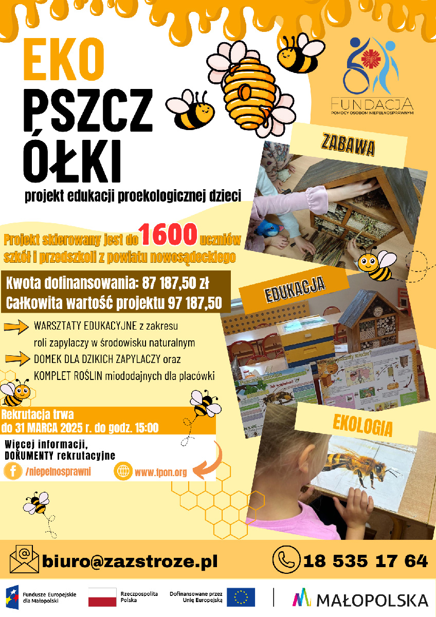 Fundacja Pomocy Osobom Niepełnosprawnym z siedzibą w Stróżach zaprasza do udziału w wyjątkowym projekcie: EKOpszczółki – projekt edukacji proekologicznej dzieci!